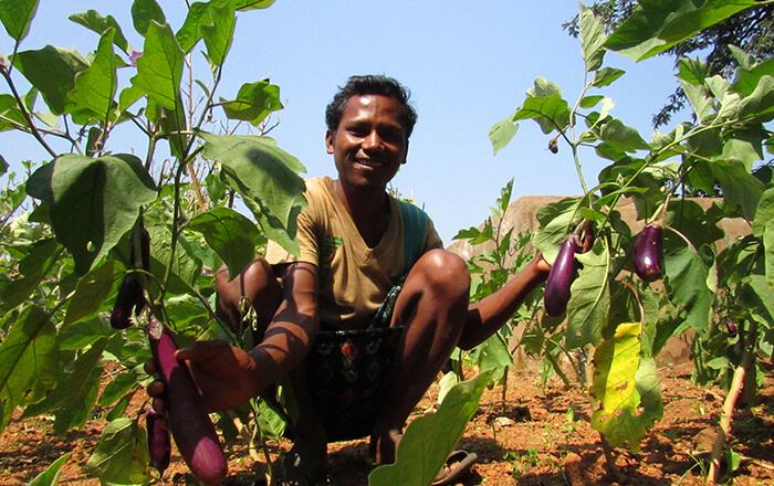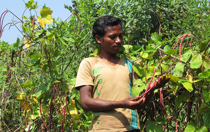 “Since last two years, as we have been practicing multi-crop farming in our family land and the community land on the hill slopes, life seems to be changing for better now,” said Rukmini adding, “I have grown maize, brinjal, kandul or arhar (yellow pigeon peas) and beans in my family farm land. Apart from vegetables and cash crops, I have also planted Mango, Banana, Neem and Papaya in the farm that has a vegetative fence,” Rukmini said while showing her farm with great pride.